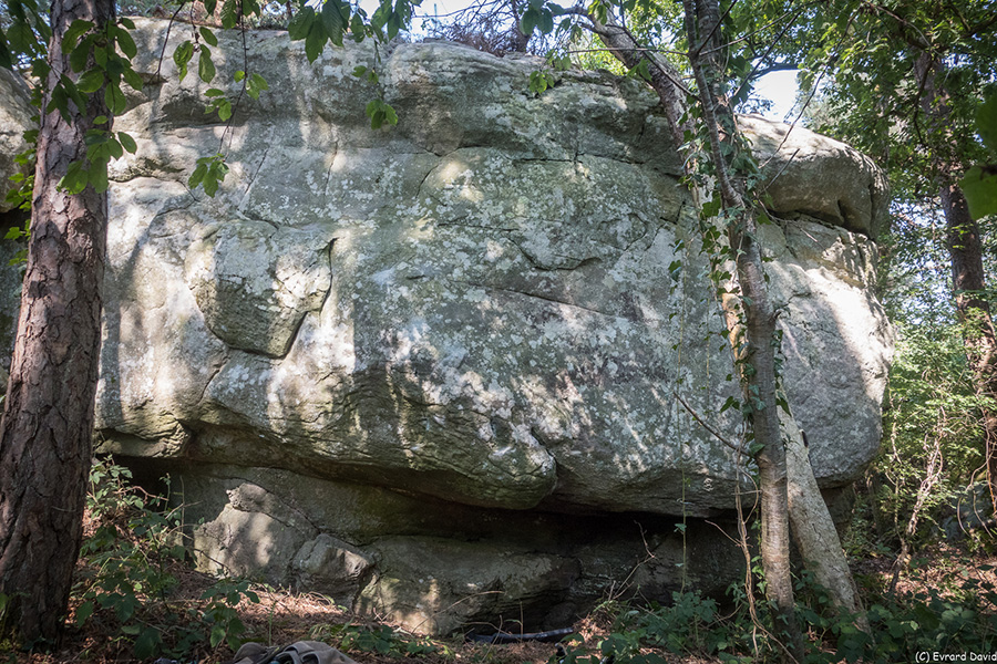 To the right of the big boulder with Pin Limite, above Court Métrage (assis). Sitstart, climb the wall on crimps and exit with a mantle.
