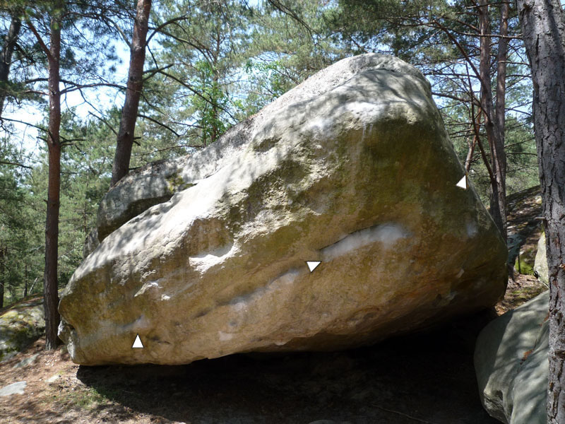 Sur le bloc d'Alien. Partir assis à gauche dans C'est à Sept B, traverser à droite sur la rampe de plats et sortir tout au bout dans Le Bon Sens (direct). NB : cette combinaison a été ouverte en 2018.