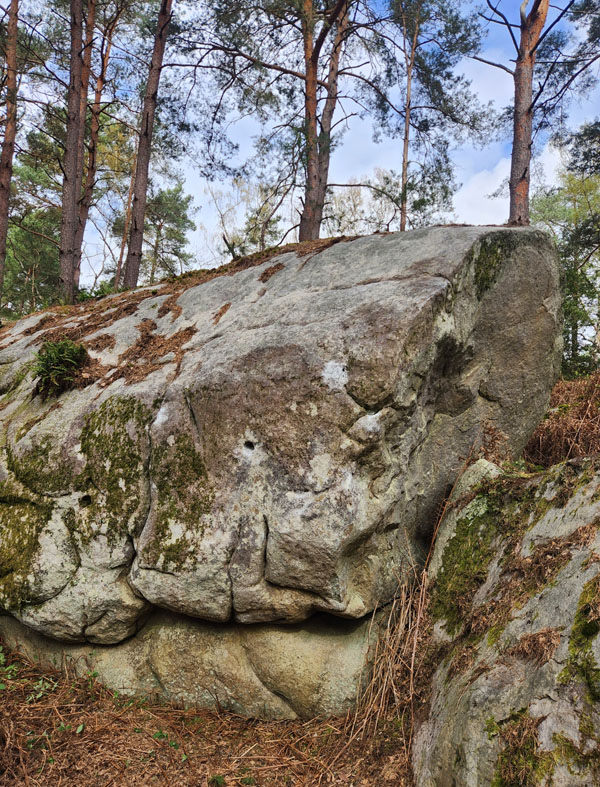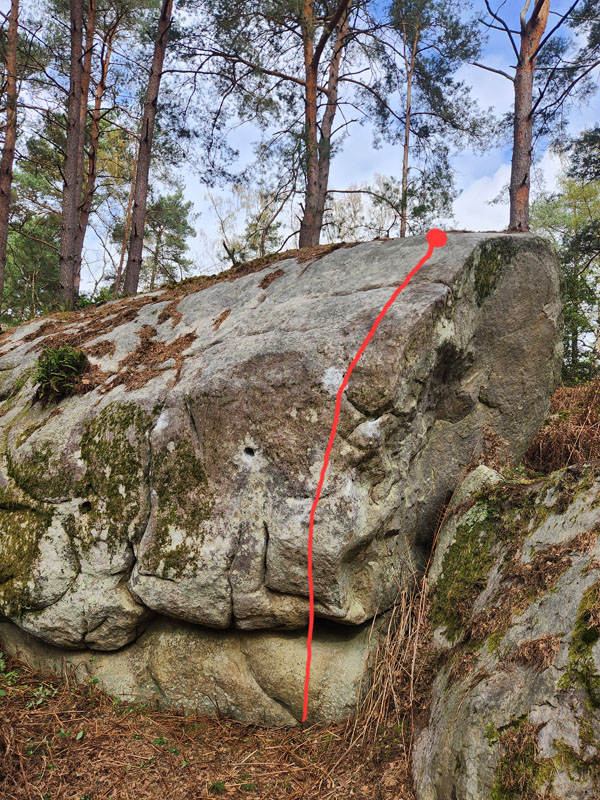 20m en dessous et au Sud de Charleston. Partir assis et sortir sur la dalle de la face de gauche en utilisant l'arête en MD.