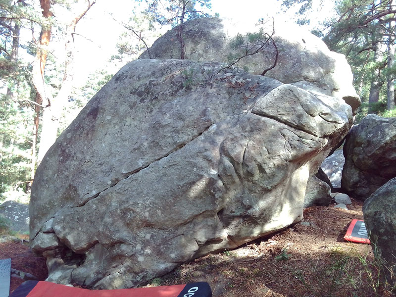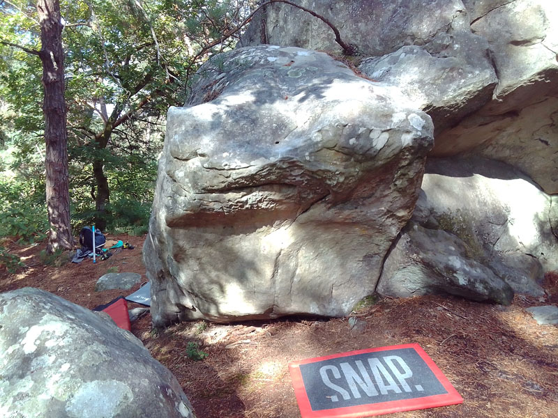 Partir assis comme pour Le Vrai Travail (assis), passer dans le tunnel, traverser à droite dans Trop Haut t'es Mort, poursuivre dans la face de droite} et sortir en réta derrière l'angle comme pour La Longe du T-Rex.