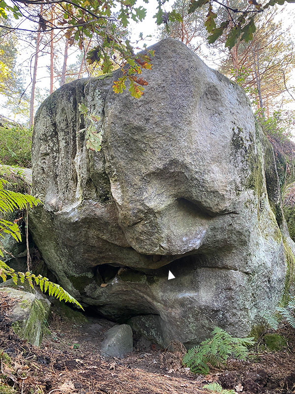 Sur le bloc situé juste au dessus de Transformers, au niveau du "Y" formé des deux branches du sentier bleu, en remontant depuis le départ du circuit bleu. Partir avec une inversée plate basse en dessous de Twist et sortir sur la proue.