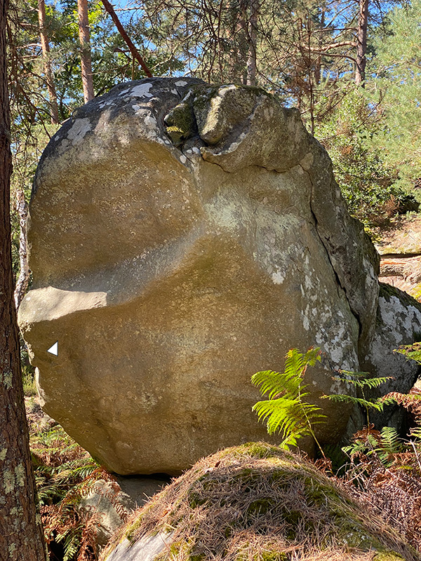 Completely to the South of the sector. Standing start, climb the overhang without the pedestal and exit on the right.