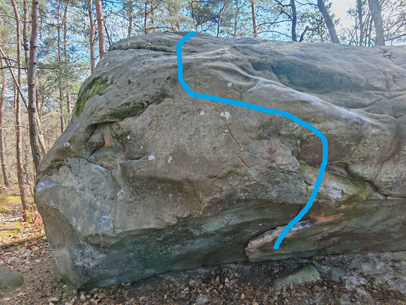 Depuis la barrière du parking, suivre le Chemin de la Plaine de Chanfroy vers l'Est sur environ 100m et prendre à gauche le Chemin des Mariniers sur 80m. Tourner à droite et suivre un petit chemin sur environ 150m. Le bloc se trouve à une cinquantaine de mètres à gauche du chemin.