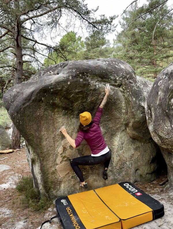 Partir assis avec de petites réglettes, prendre une autre réglette légèrement à droite et sortir directement sur des plats.