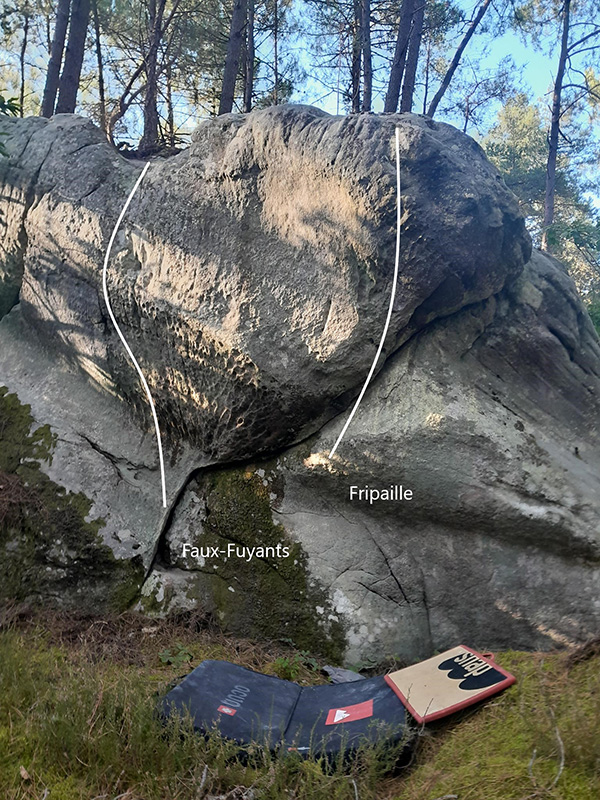 La voie se situe à droite du Chemin du Mont Blanc en montant vers la carrière, environ 150m à l'Ouest du groupe de blocs avec