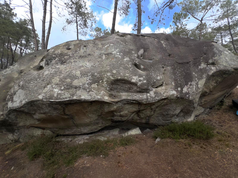 Partir assis dans le dévers et sortir en réta dans La Haute Marche (n°9 orange). NB : première réalisation connue par Stefan Dillenburg et Michael Resvoll.