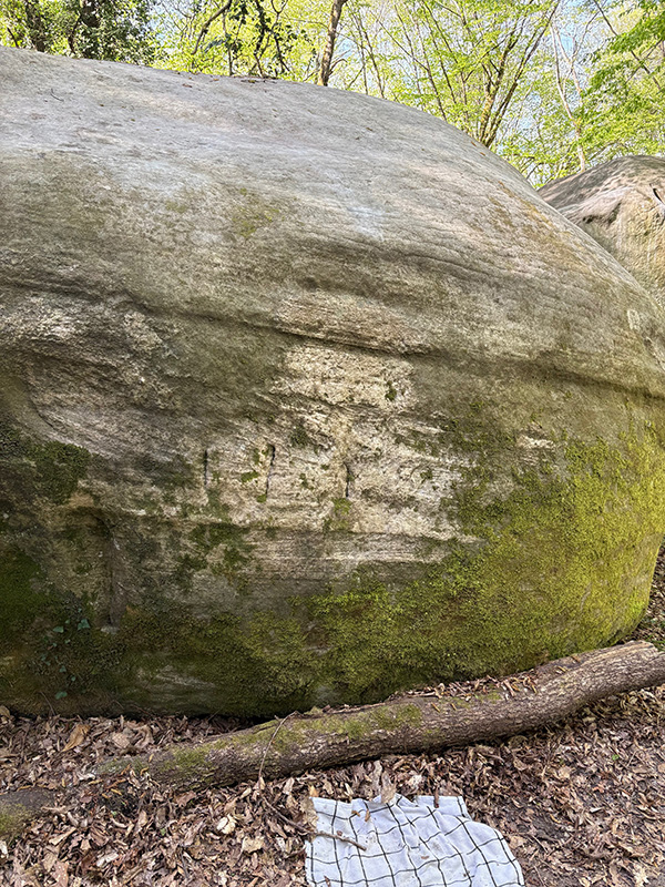 , sur le petit bloc au pied de