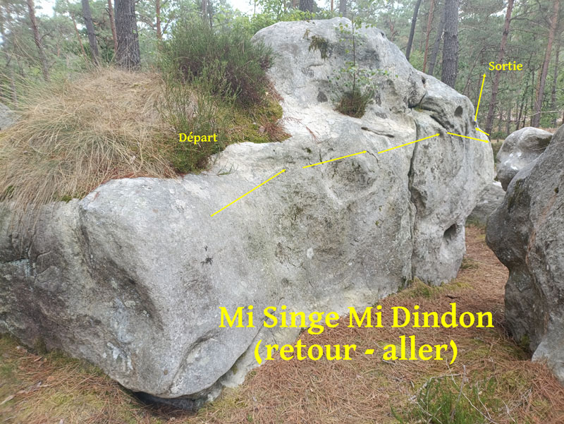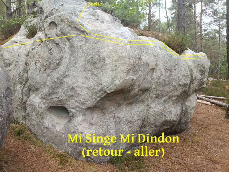 Partir debout tout à gauche dans le couloir, traverser à droite sur quatre faces jusqu'au dessus du départ de Mi-Singe, Mi-Dindon, revenir à gauche et sortir après le dernier angle.